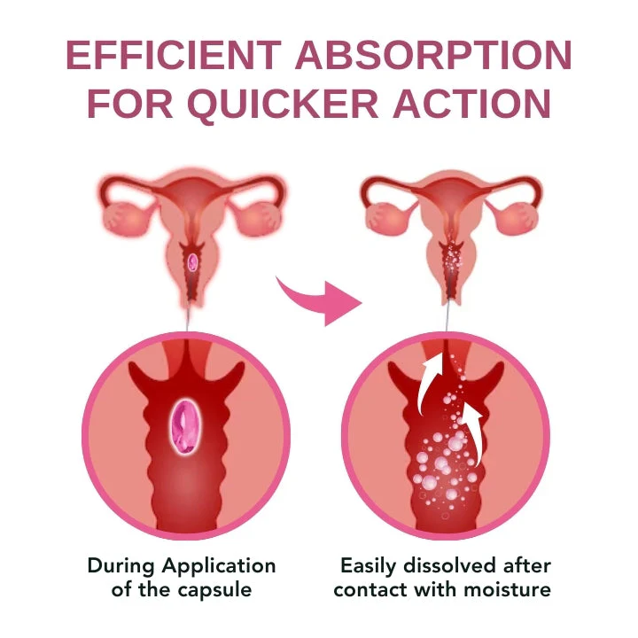 Direct Absorption: By utilizing vaginal insertion, Oveallgo™ Capsules ensure direct absorption of the active ingredients into the bloodstream, bypassing the digestive system. This results in quicker action and more effective relief compared to oral medications.