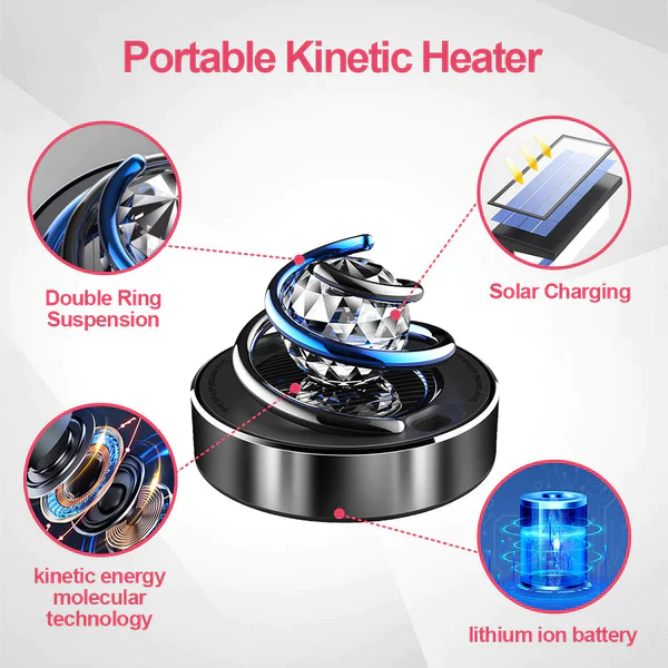 The Oveallgo™ Miniature Portable Solar Heater features a dual-loop suspension system designed by NASA. When activated, these dual loops induce molecular rotational motion. The molecular movement releases kinetic energy, which not only prevents water molecules from freezing but also serves the fundamental task of heating the environment.