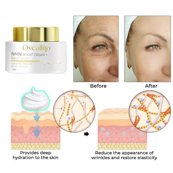 Oveallgo™ NMN Boost Aging-Treatment Cream, you can say goodbye to dull, sagging skin and hello to a more vibrant, youthful complexion. Our cream is easy to apply and quickly absorbs into the skin, leaving no residue or greasy feeling.