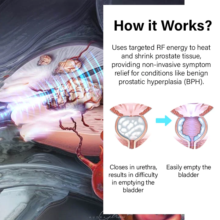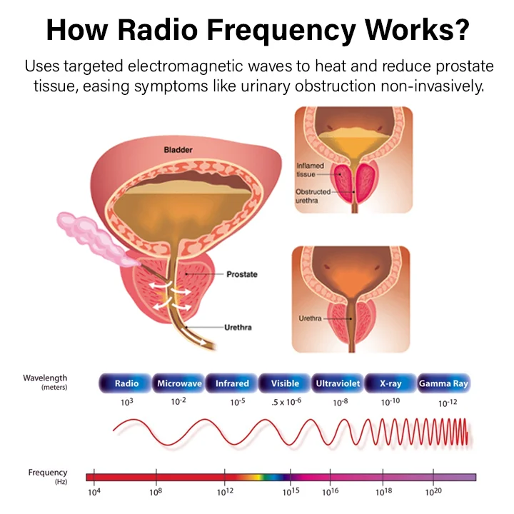 Radio frequency (RF) therapy is a cutting-edge medical treatment that uses electromagnetic energy to generate heat within body tissues. This controlled heat stimulates natural healing processes by promoting increased blood flow, collagen production, and tissue regeneration. It is especially effective for addressing soft tissue conditions, significantly reducing inflammation, alleviating pain, and enhancing overall cellular function. As a non-invasive procedure, RF therapy offers a safe alternative to traditional surgical methods, making it increasingly popular in various medical fields, including urology and prostate health.
