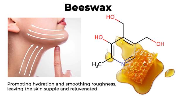 Beeswax: Nature’s protective shield for the skin, beeswax is a rich emollient that locks in moisture and forms a breathable barrier, shielding the skin from environmental stressors. It boasts anti-inflammatory and antibacterial properties, making it ideal for soothing and healing dry, irritated skin. Beeswax also contributes to the luxurious texture of skincare products, providing a smooth and velvety feel upon application. Indulge in the natural goodness of beeswax and unveil soft, supple skin that glows with vitality.
