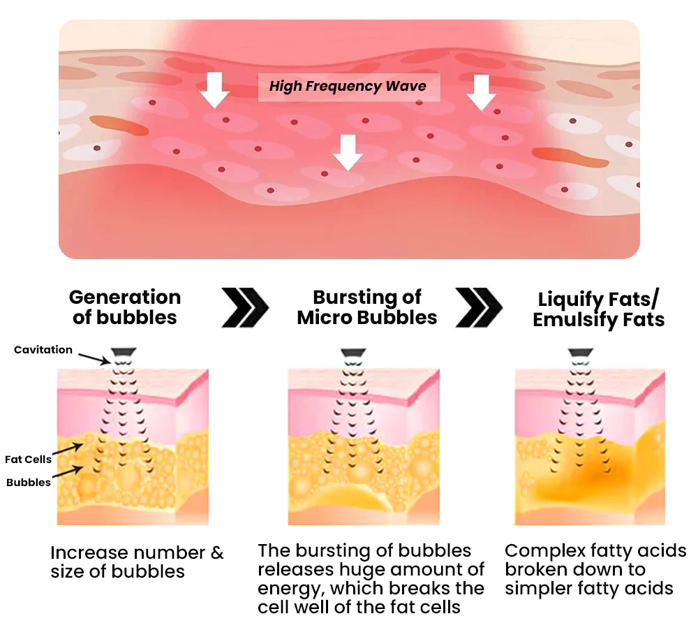 Through the use of vibrations, a small bubble is created on the surface of targeted fat cells, leading to a process that may seem unbelievable. As a result of the increased pressure caused by the vibration, the fat cells expand and ultimately rupture, leaving behind a liquid that can be eliminated as waste.