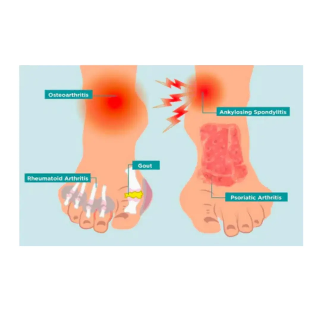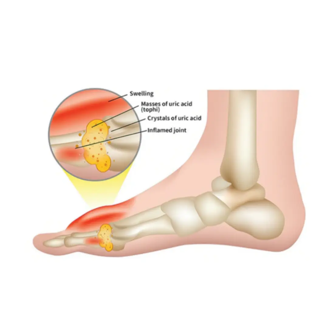Gout (metabolic arthritis) is caused by an increase in glancing biosynthesis, excessive production of uric acid, or poor excretion of uric acid, resulting in an increase in uric acid in the blood and thus causing gout, which is characterized by hyperuricemia and recurrent episodes of gouty acute arthritis, commonly occurring in the joints of the big toe but also in the hands, knees, elbows, etc.