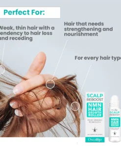 Introducing Oveallgo™ ScalpReboost NMN Hair Growth Roller, a revolutionary product designed to promote healthy hair growth. This hair growth roller is a blend of cutting-edge scientific research and innovative design. Its formula contains NMN, a potent form of NAD+ that has been proven to activate hair follicle stem cells, resulting in improved hair growth. The roller’s targeted application design ensures maximum delivery of NMN directly to the scalp, providing a safe and effective solution for anyone looking to achieve fuller, thicker, and healthier hair.