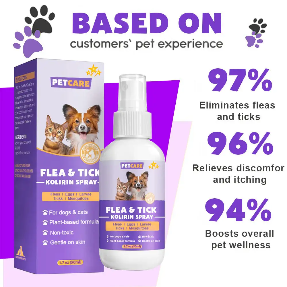 PetCare™ Flea & Tick Kolirin Spray is a safer, easier, and more effective way to protect your pets from fleas, ticks, and other stubborn pests.