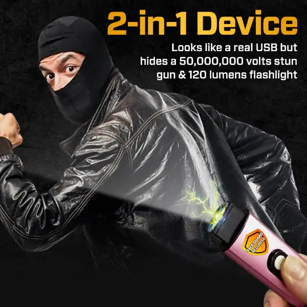 Revolutionize your personal safety with the PinkySafe™ 50,000,000 Stun USB Keychain, which combines a stun gun, flashlight, and pain-inducing shocks—all within a sleek 1.8 oz design. Respond swiftly to threats with intimidating electrical sparks and a powerful 120-lumen light. Safely carry the USB stun gun in your purse or pocket, ensuring you’re always prepared.