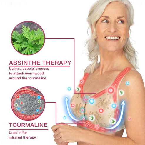 The ionic detox bra is immersed in wormwood lye and uses a special process to fix the tourmaline, releasing thujone and negative ions. It combines far infrared therapy with wormwood liquor therapy and provides relief from pain in different parts of the body, muscle relaxation and anti-inflammatory effects. Long-term observations have shown that it can also prevent health problems such as cellulite, swollen lymph nodes, edema, fibroadenoma and cysts and even help prevent breast cancer.