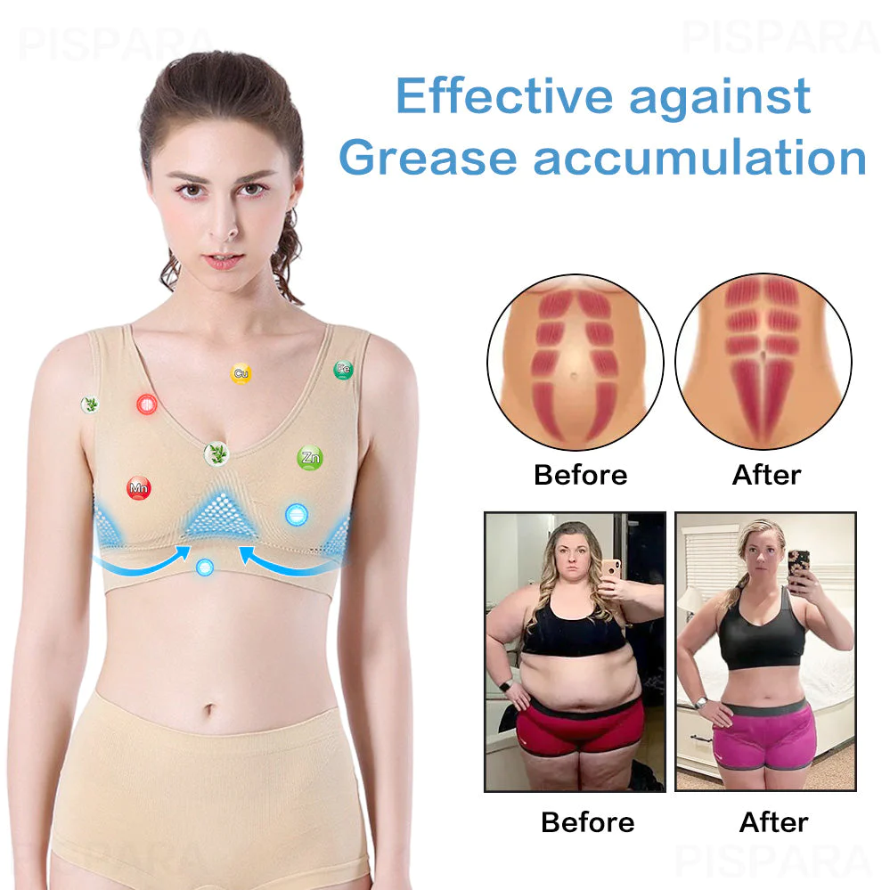 Our PISPARA™ Sweat-free Mesh Detox Shaping Bra can help you achieve your weight loss goals, even if you don’t exercise regularly and have a balanced diet. The 80% far-infrared therapy can assist you in reaching your ideal weight. This bra helps increase metabolism, stimulates the lymphatic system, detoxifies the body, and eliminates accumulated cellulite and edema. The fat-burning fabric containing electric stone efficiently metabolizes fat, allowing you to burn fat while sleeping, working, or exercising, shaping your perfect body curves overnight!