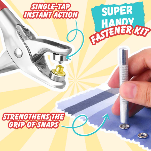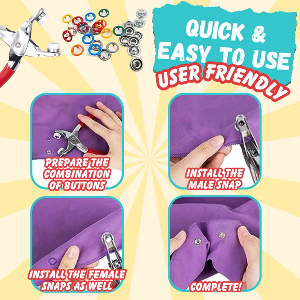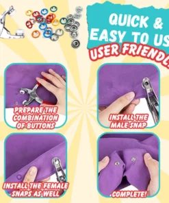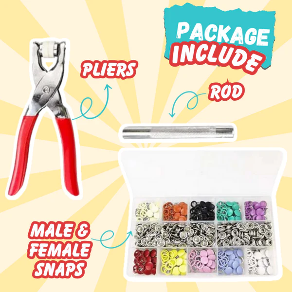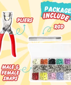 This ingenious kit comprises an assortment of snap button varieties and a sturdy plier, enabling you to quickly secure buttons with seamless ease. This guarantees precise and remarkably stable fastening every time, achieved simply by clamping. Say goodbye to complicated and time-consuming methods like hammering, sewing, or cutting button-holes, often resulting in uneven outcomes.