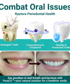 1. Safe, Effective, and Risk-Free: Made with 100% natural, chemical-free ingredients, PuraCo™ is scientifically formulated to be gentle yet effective for all ages. Trusted by dental professionals, our side-effect-free formula ensures safe use for children, adults, and seniors alike.