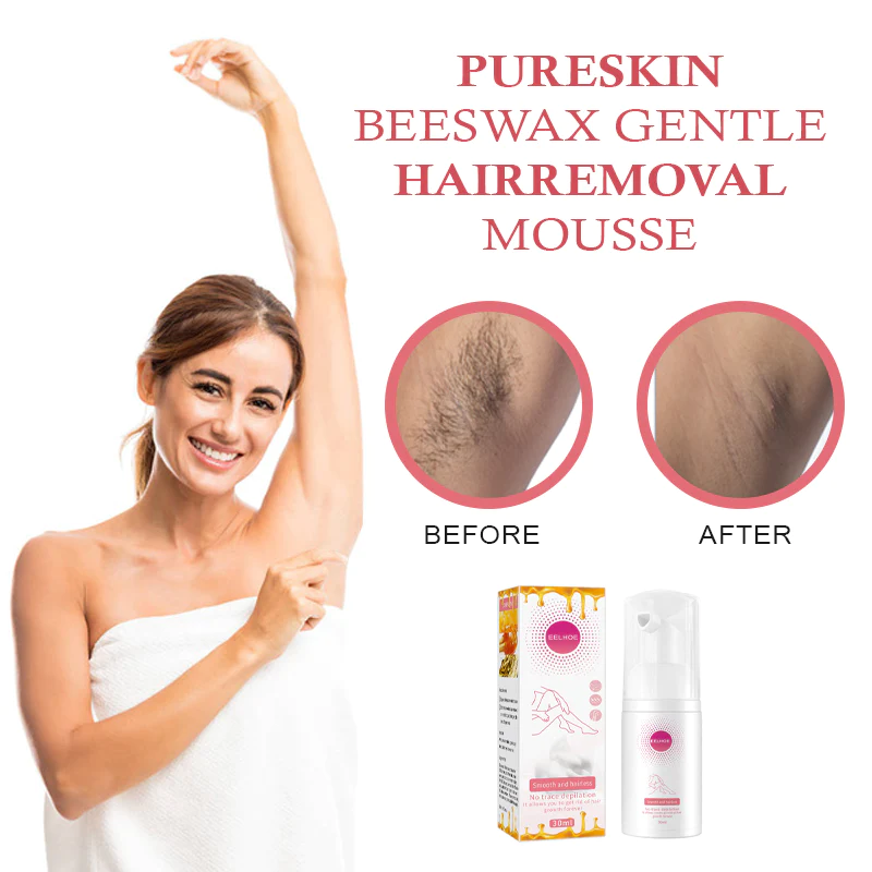 PureSkin Beeswax Gentle HairRemoval Mousse is a revolutionary hair removal product that provides gentle yet effective hair removal–no allergies, black spots, or stubble.