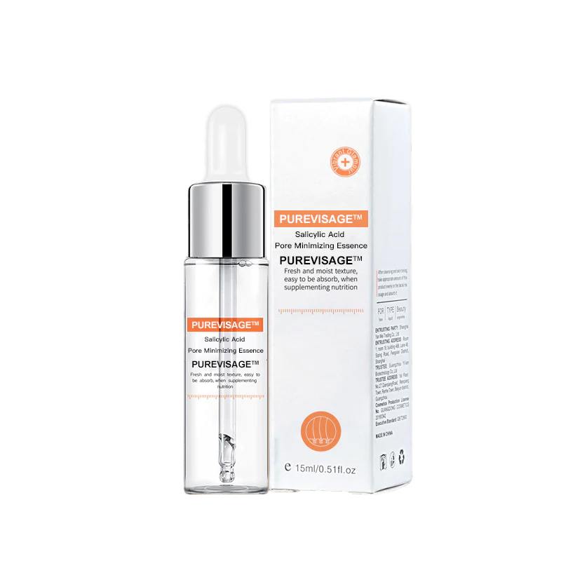 PUREVISAGETM Salicylic Acid Pore Minimizing Essence is a professional-grade skincare product. It has a refreshing and moisturizing texture that is easily absorbed by the skin. While replenishing the skin with nutrients, it effectively cleanses dirt from the pores and tightens them, refining their appearance. This essence works to repair enlarged pores, remove blackheads and whiteheads, improve acne-prone skin, fade acne scars, and enhance the smoothness and refinement of the skin.