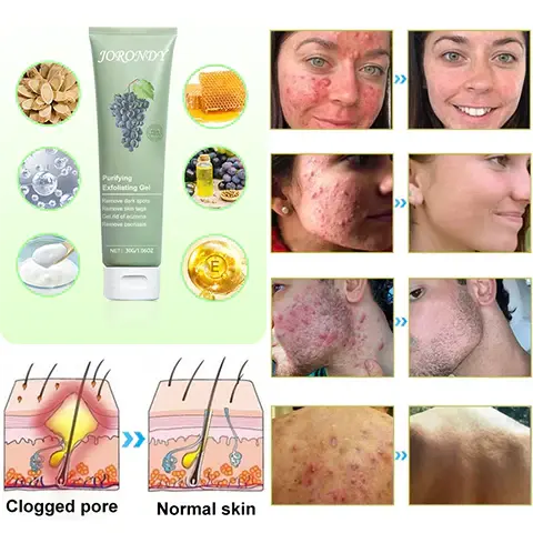 Jorondy™ Purifying Exfoliating Gel features an advanced natural formula designed to gently exfoliate and remove dead skin cells. promoting cellular metabolism. Over time. it helps treat Acanthosis Nigricans. fades hyperpigmentation and dark spots. smooths out fine lines. and addresses skin tags and eczema. Infused with nourishing natural ingredients. this gel hydrates and brightens the complexion while improving overall evenness. By unclogging pores and preventing impurity buildup. it reduces inflammation. leading to clearer. smoother. and more radiant skin.