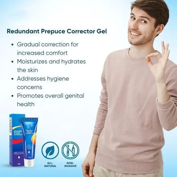 Our Redundant Prepuce Corrector Gel employs a unique blend of natural ingredients and advanced technology to gently soften and moisturize the excess foreskin. Applied externally, the gel facilitates a gradual reduction in redundant tissue, promoting a more comfortable and confident experience. The formulation works by hydrating the skin, enhancing elasticity, and encouraging a gentle retraction of the foreskin over time.