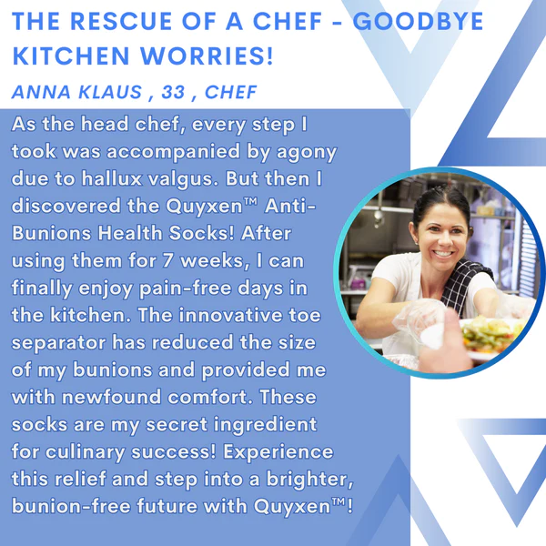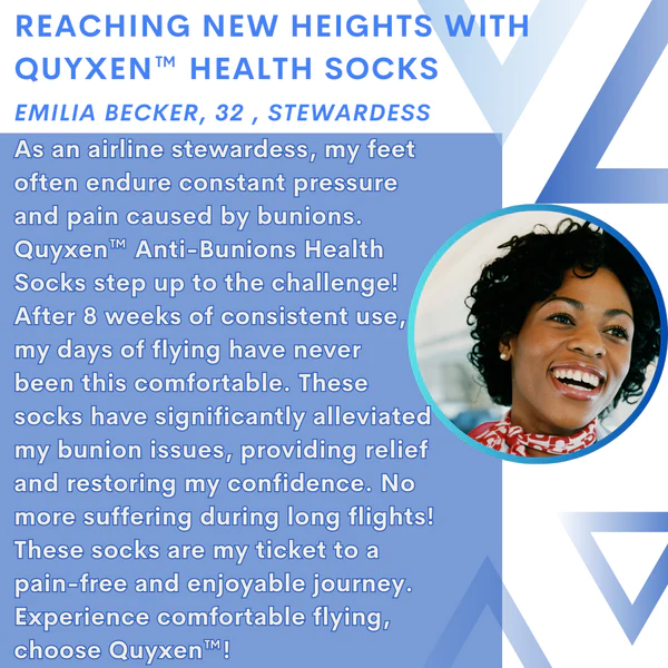 “I highly recommend Quyxen™ Anti-Bunion Health Socks for those suffering from bunions. These unique socks come with toe separators that promote proper toe alignment, reduce bunion size, and alleviate pain. Comfortable and effective, these socks offer a non-surgical solution to restore your foot health. Incorporating them into your daily routine could be a valuable step towards improving your overall foot comfort and well-being.”