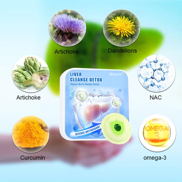 Quyxen™ Liver Detox Repair Patch utilizes microcapsule technology, with these microcapsules containing active ingredients. When the patch is applied to the skin, the microcapsules release natural ingredients and deliver them to the liver through targeted transdermal delivery technology, penetrating through the layers of the skin (stratum corneum, dermis, and capillaries). These ingredients exert their effects in the liver, promoting the detoxification process, providing antioxidant support, and supporting the regeneration and repair of liver tissue.