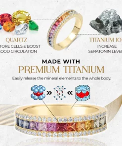The Rainbow Tourmaline Spinning Ring is a natural solution to support metabolism and digestive health. Crafted with natural tourmaline stones, this ring has a fully magnetized strength of 55mT at 10mm intervals. The TitaniumION technology in the neck loop improves blood circulation, metabolism, and vitality. With its natural healing properties, this ring is a safe and non-invasive way to support wellness and boost energy levels.