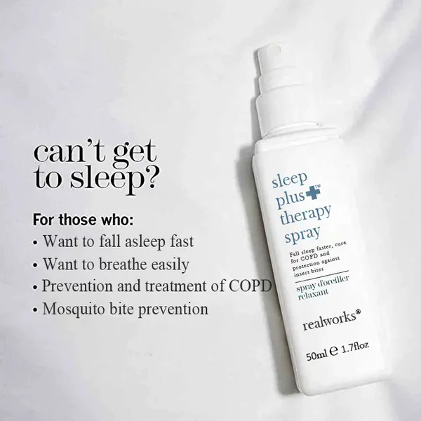 realworks® spray helps you fall asleep quickly, improves the quality of your sleep, and reduces the risk of high blood pressure, stroke, heart disease, diabetes, and obesity. Additionally, it can increase oxygen levels in the blood, improve breathing, and help alleviate COPD symptoms.