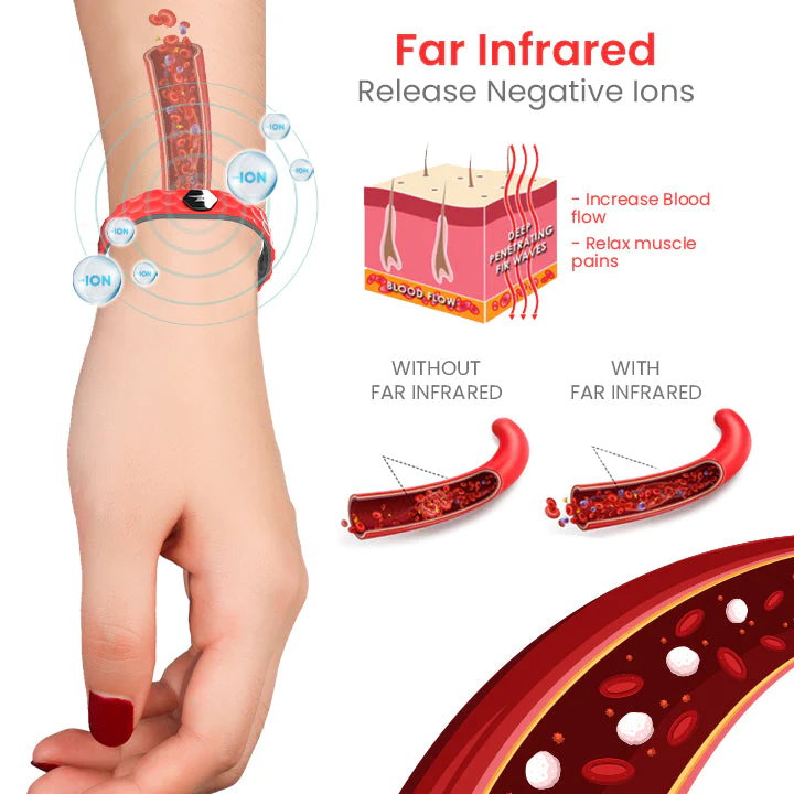 Independent studies have shown that continuous exposure to far infrared and negative ions significantly increased blood velocity and vein diameter. Thus, our Far Infrared and Negative Ions wristband can help keep your system clean.