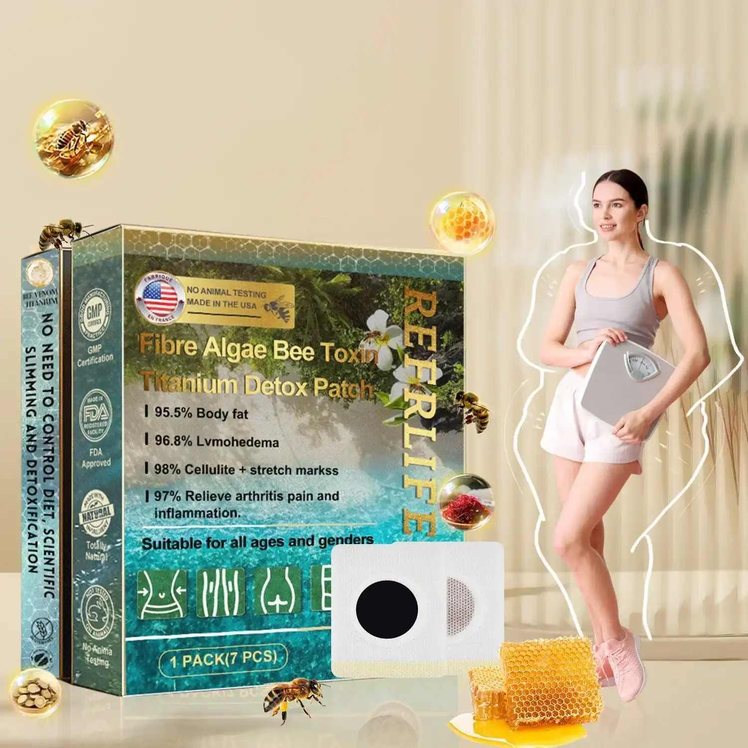 Package Includes: 1 x REFRLIFE™ Bee Venom Titanium Seaweed Fiber Detox Slimming Patch