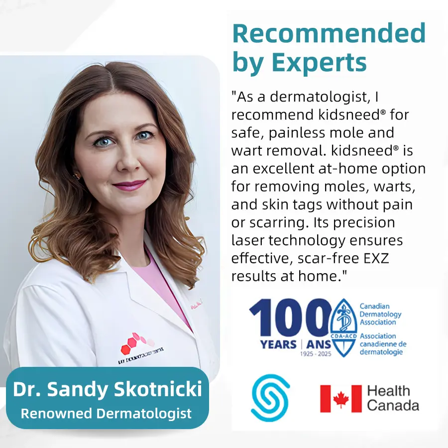 Canada’s leading dermatologists consider KIDSNEED® to be a breakthrough in at-home skin therapy. Backed by clinical studies and top dermatology associations, regular use of KIDSNEED® has been proven effective in reducing moles, warts, dark spots, and skin blemishes. Experts recognize KIDSNEED® as a safe, non-invasive alternative to costly professional treatments, making high-quality skincare accessible to everyone.