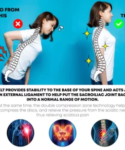 The Ricpind BackPain SciaticaReliever Compression Belt provides stability to the base of your spine and acts as an external ligament to help put the Sacroiliac Joint back into a normal range of motion. At the same time, the double compression zone technology helps decompress the discs, and relieve pressure from the sciatic nerve, thus relieving sciatica pain.