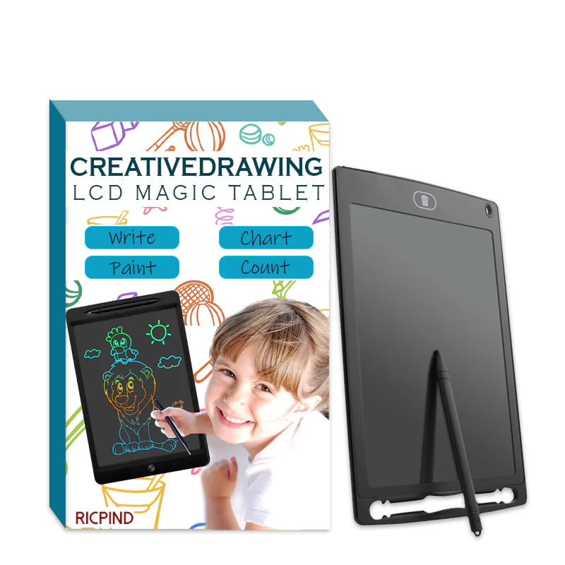 Ricpind CreativeDrawing LCD Magic Tablet is designed to help you and your children create wonderful images with ease. It features a wide screen and an easy-gripping smart pen that delivers clear and colorful, quality lines. Perfect for drawing, writing, calligraphy, doodling, shading, designing, and more possibilities. Making it an ideal scribbling board but with an additional fun color scheme than the traditional pencil and paper.