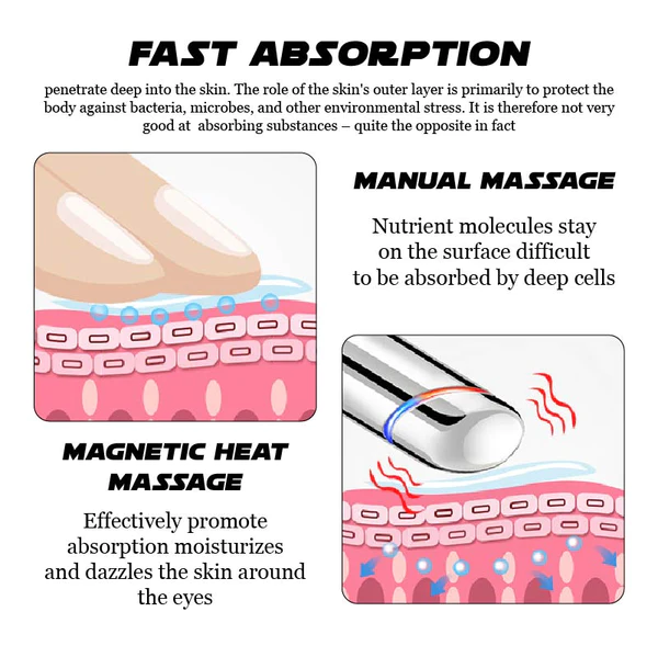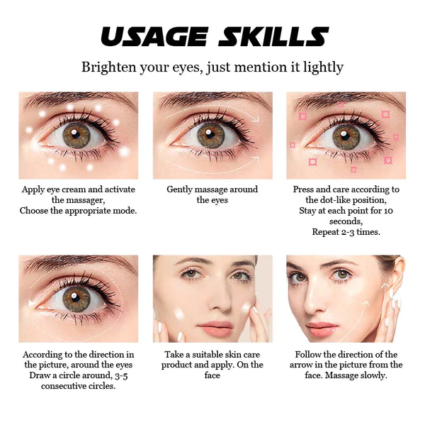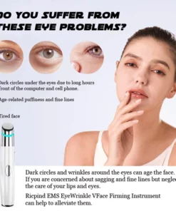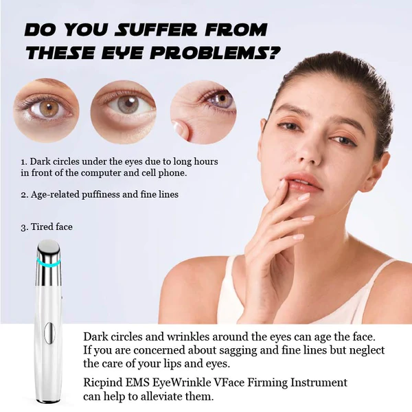 The skin may start to sag, and fat that’s usually around the eye can move into the area below your eyes. Also, the space below your eyes can gather fluid, making the area look puffy or swollen. Ricpind EMS EyeWrinkle VFace Firming Instrument is specially designed for targets to reduce the appearance of dark circles and bags under the eyes effectively and naturally.
