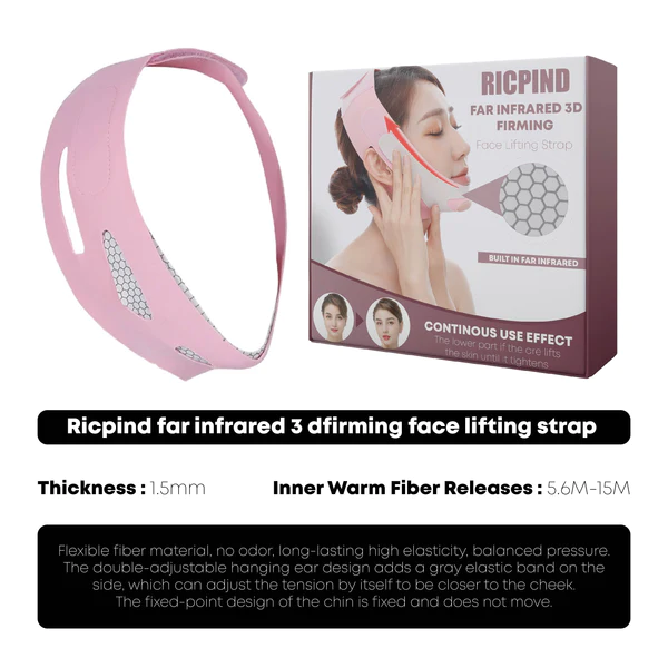 The Ricpind FarInfrared 3DFirming FaceLifting Strap fits your face more closely and can be adjusted to how you feel comfortable. The side leakage design can liberate your ears. With a high-viscosity velcro, which provides excellent grip and adjustment capabilities, it can be customized to match your skin shape.