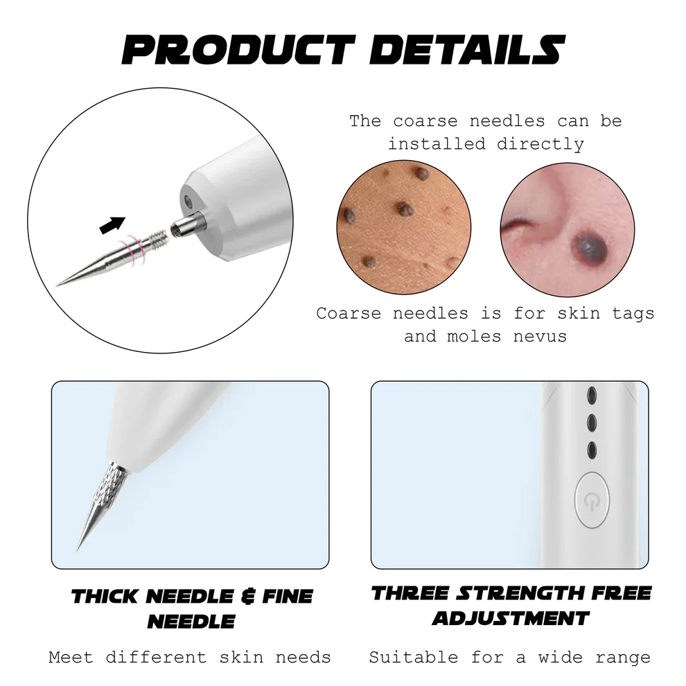The Thin Needle is used to treat skin spots and freckles, moles, and skin tags. It uses a plasma micro-dissection technology that produces low-temperature, high-frequency discharges.