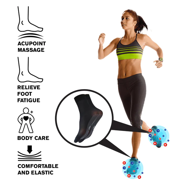Far infrared rays are a type of electromagnetic radiation that can penetrate up to 16 mm into human subcutaneous tissue. This means they can penetrate deep muscle tissues, tendons, nerves, blood vessels, and ligaments and help repair damaged cells, expand microvessels, promote blood circulation, and accelerate blood and cellular tissue metabolism. In addition to warming the body, far infrared rays also increase blood flow by stimulating heart rate and activity even when you are not exercising. They also increase enzymes and hormones essential for burning fat and losing weight. Studies have shown that tourmaline ionic body-shaping elastic socks are the best choice for relieving knee pain and inflammation. These socks naturally release negative ions and far infrared rays, which improve circulation and oxygen supply throughout the body.