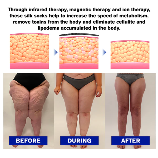 Tourmaline minerals in the bottom and belly of the sock stimulate foot and calf muscles by massaging acupuncture points to promote blood circulation, helping to relieve conditions such as varicose veins, muscle tension, foot fatigue, and muscle stiffness. Our Ricpind Tourmaline Ionic BodyDetox Socks stretch socks help you achieve your weight-loss goals by increasing the speed of metabolism, removing toxins from the body, and eliminating cellulite and lipedema. These silk socks are infused with infrared therapy, magnetic therapy, and ion therapy.