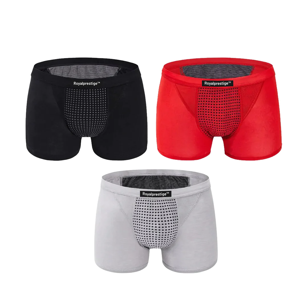 After the age of 50, over 65% of men struggle with prostate issuesIntroducing Royalprestige™ Prostate Magnetic Therapy Boxer Briefs, the ultimate tool for rejuvenating your prostate health. Using far-infrared fiber technology and 400 premium tourmaline coating points, this innovative boxer provides targeted magnetic therapy engineered to promote natural prostate health in a comfortable, safe, and effective manner.