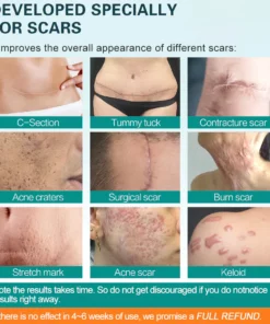 ScarRemove™100% Advanced Scar Gel– Made with allantoin and advanced scar Gel, our formula helps promote skin health, firmness, and elasticity to reduce the appearance of most types of scars, including surgical scars, burn scars, hypertrophic scars, and keloids. The silicone-based scar Gel forms a breathable layer to increase the skin hydration, protect the scar tissue, normalize the collagen synthesis and balance the skin growth procedure,which can make your skin look smooth and even!