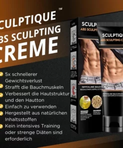 Sculptique™ Abs Sculpting Creme ist eine revolutionäre Creme mit natürlichen Inhaltsstoffen, die auf die Fettzellen im Bereich des Mittelteils abzielen und die Durchblutung der Muskeln erhöhen. Sie hilft, die Fettschicht zu verbrennen und fördert das Wachstum und die Definition der Muskeln, was sie zur perfekten Lösung für Menschen macht, die mit minimalem Aufwand ihren Traumbauch erreichen wollen.