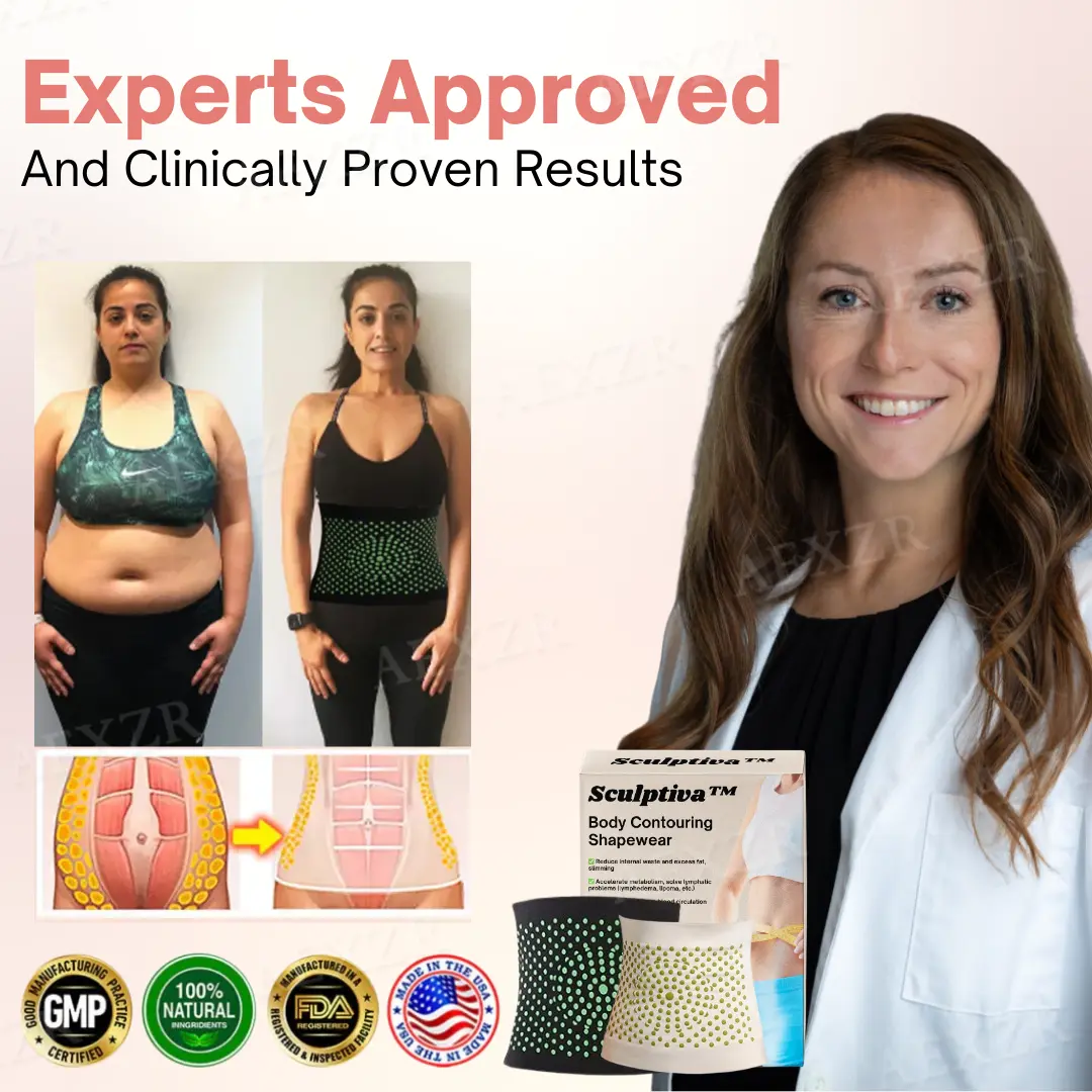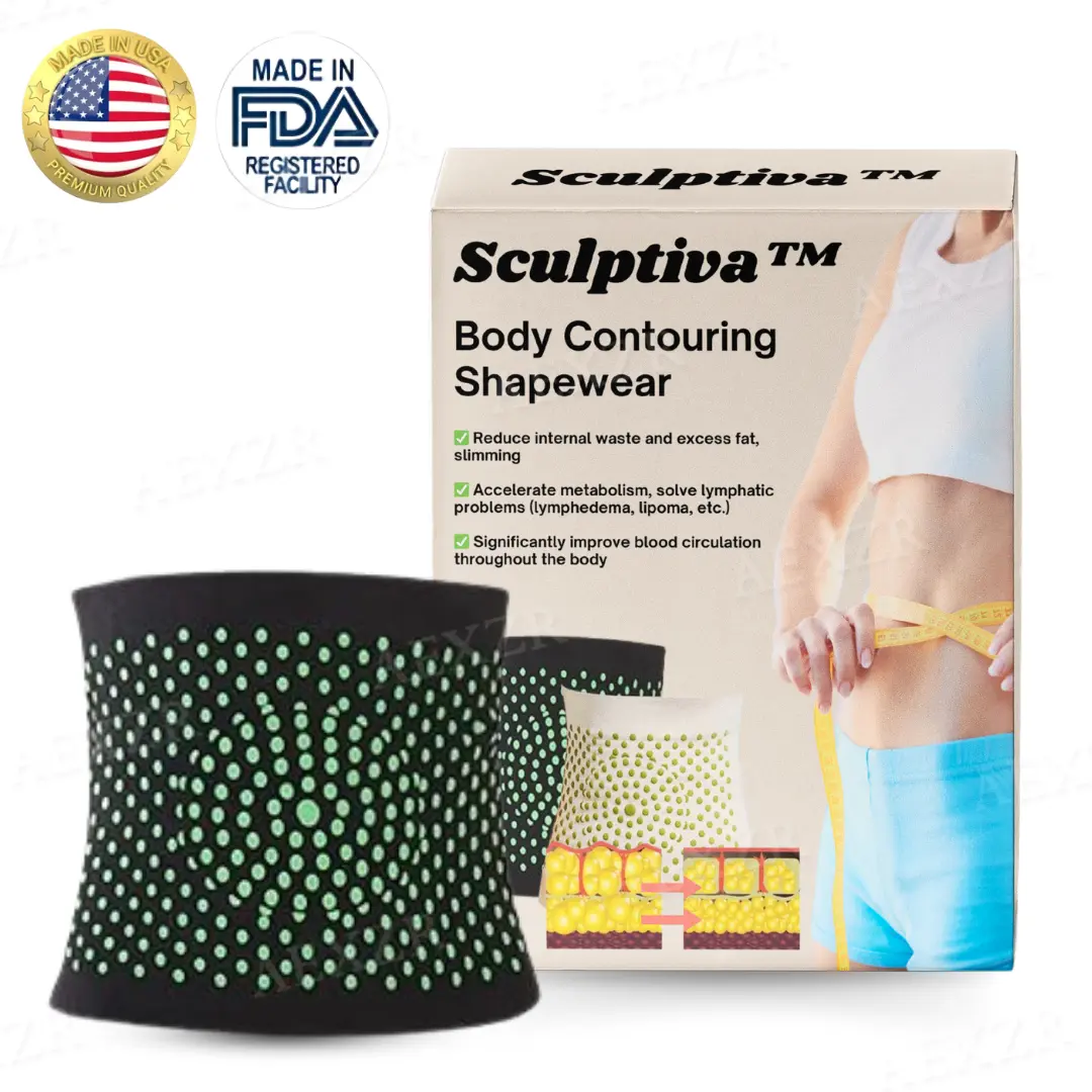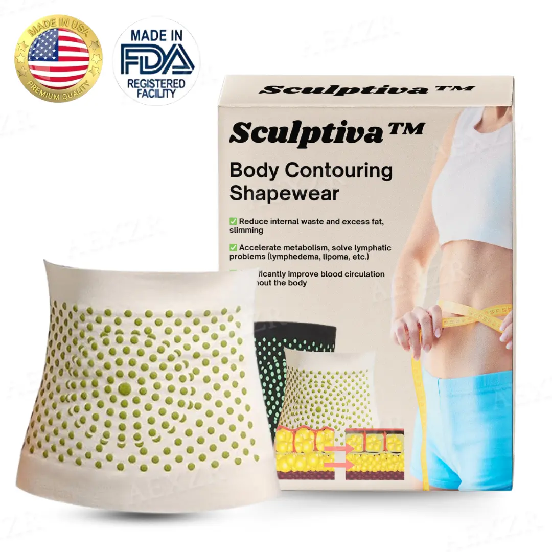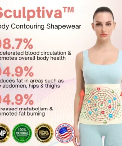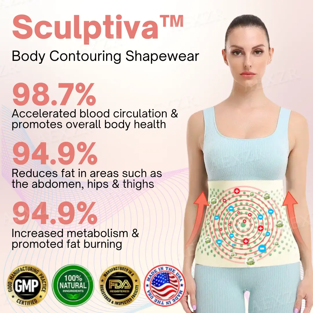 Sculptiva™ is a body shaping shapewear that combines advanced technologies like ion therapy, far-infrared therapy, and wormwood therapy to promote blood circulation, reduce fat, and enhance lymphatic drainage. It helps break down stubborn fat, improve metabolism, and provide a seamless, contoured body shape.