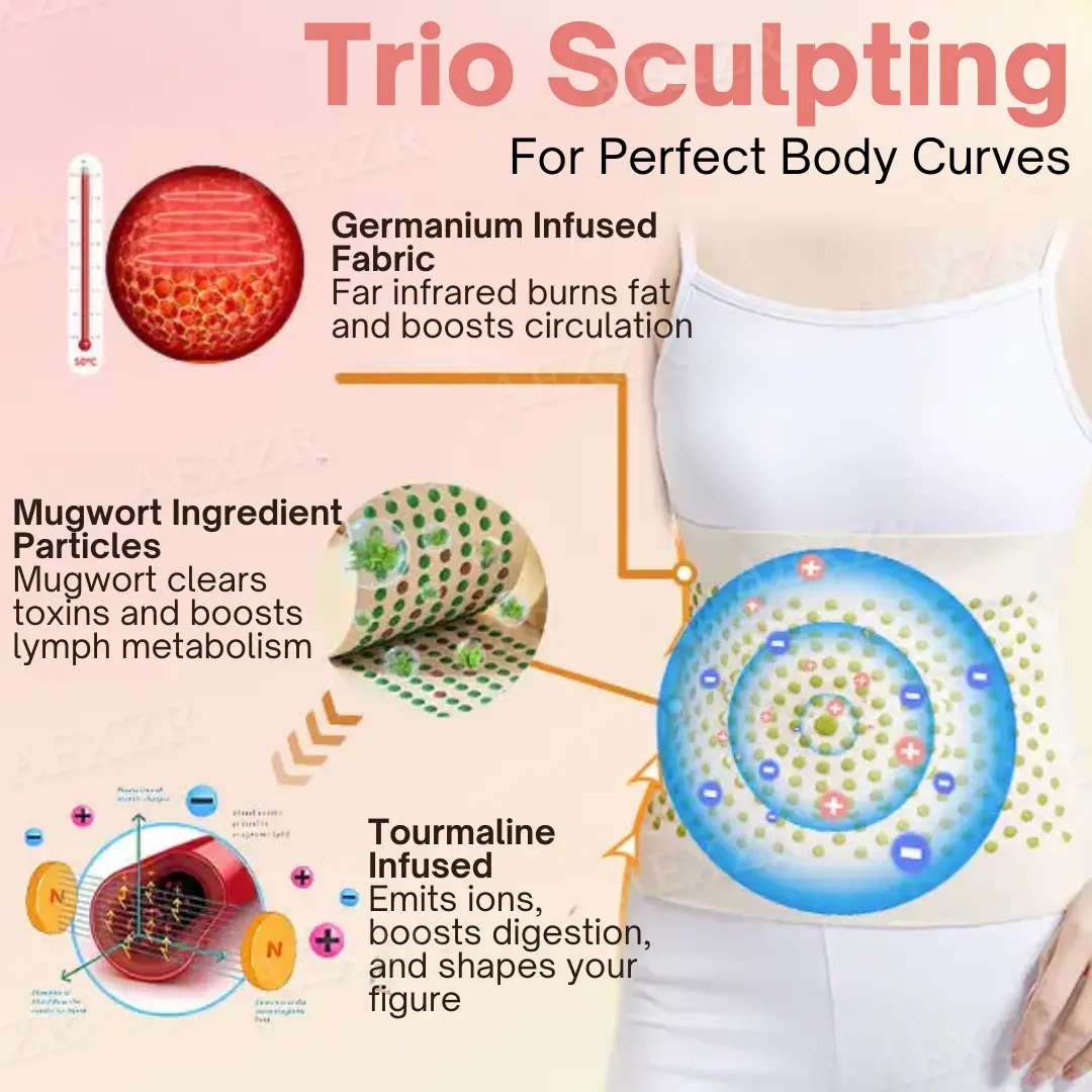 Sculptiva™ utilizes advanced technologies like ion therapy, low-frequency vibration, far-infrared therapy, and natural wormwood therapy to help contour and rejuvenate your body—all without relying on external power sources. These therapies work synergistically to promote blood flow, enhance lymphatic circulation, reduce fluid retention, alleviate inflammation, and break down cellulite, offering comprehensive body-shaping benefits. Sculptiva™ is designed with innovative micro-vibration fabric that uses low-frequency vibrations to mimic the effects of a targeted massage. These vibrations stimulate specific muscle groups, promote lymphatic detoxification, and help break down stubborn fat deposits. Additionally, the vibrations support muscle relaxation, accelerate recovery, and reduce cellulite by increasing blood flow and oxygen supply to the skin and muscles.