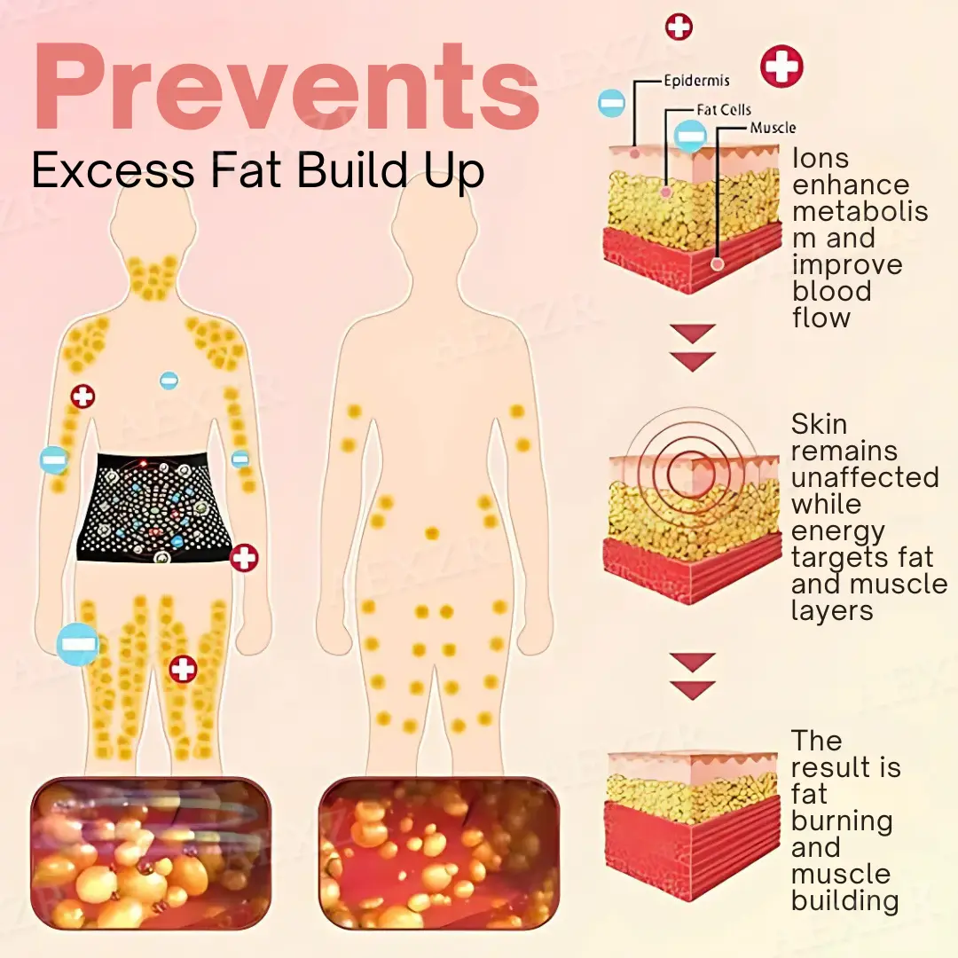 Far-Infrared Therapy, is seamlessly integrated into Sculptiva™ through its innovative germanium-plated fabric. This advanced technology generates heat to stimulate blood circulation, boost collagen production, and enhance cellular metabolism—all without relying on external power sources. By accelerating calorie consumption and breaking down fat, this therapy supports weight management while rejuvenating the skin, making Sculptiva™ a game-changing tool for effective body contouring and skin vitality.