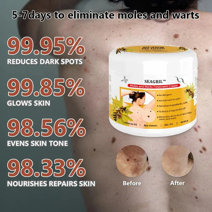 Our team of dermatobiologists, Juliana King, has been researching to provide innovative products to meet a wide range of warts and skin tags removal needs. This led to the discovery of SEAGRIL™ Bee Venom Mole and Wart Treatment Cream , an organic formula that dries, shrinks and heals warts and skin tags.