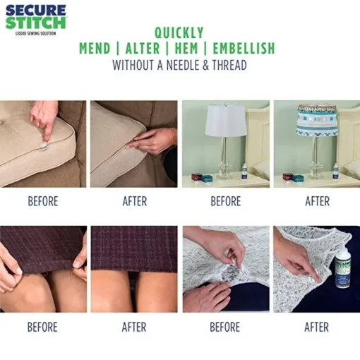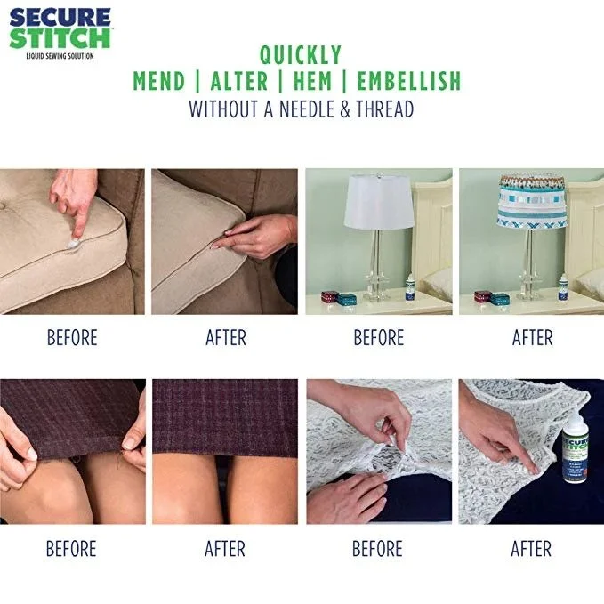 - NO NEEDLE, NO THREAD! The quick and easy sewing alternative eliminating a needle & thread! The perfect kit for all your liquid sewing needs! Won’t string when you apply it! Won’t bond to your skin!