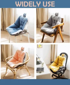The chair cushion is warm, soft and comfortable. Winter is coming, the cushion is very useful. It has a rope behind it to help us secure it to the chair. Really nice product!
