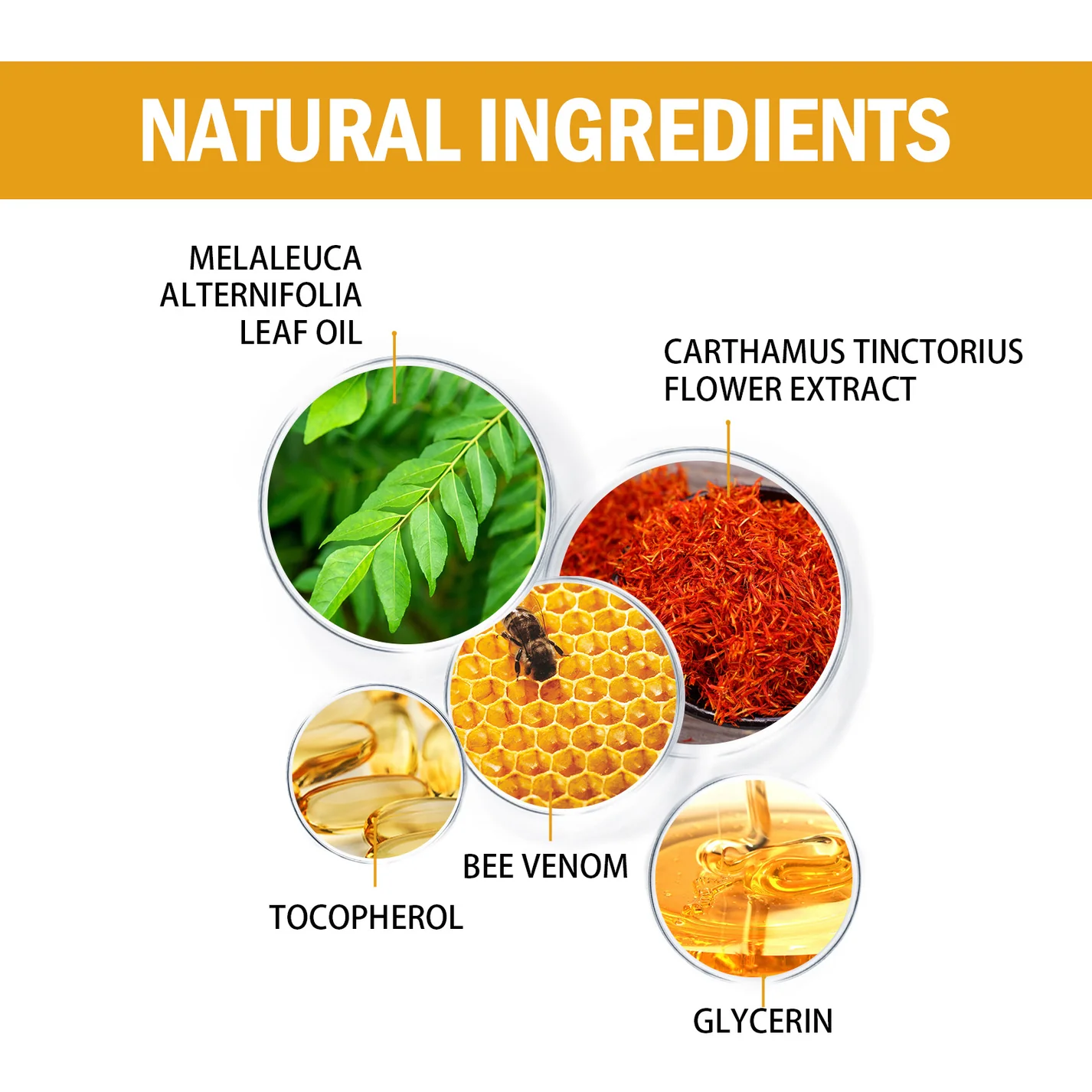 Bee venom contains several bioactive compounds, including melittin, apamin, and adolapin which has been scientifically proven to tackle skin tags or warts effectively. Among its arsenal of enzymes, phospholipase A2 stands out for its ability to break down abnormal tissue, simplifying the removal process of skin tags or warts.