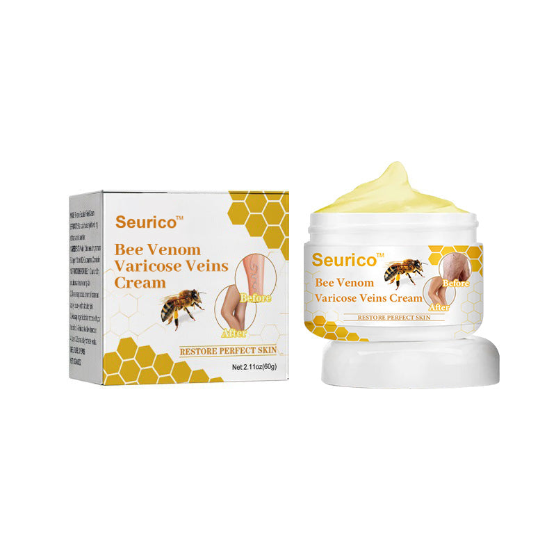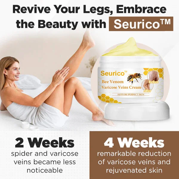 Seurico™ Bee Venom Varicose Vein Cream blends potent natural ingredients with a comprehensive approach to address varicose veins and nourish the skin. The cream’s venotonic elements reinforce vein walls, enhance circulation, and diminish blood pooling that leads to varicose veins. Moreover, skin-revitalizing components improve skin tone and moisture, resulting in healthier, more even skin texture and color in affected areas. The cream also includes natural anti-inflammatory agents to reduce discomfort and swelling linked to varicose veins. With recommended regular use, both varicose veins and your skin’s overall appearance can visibly improve.