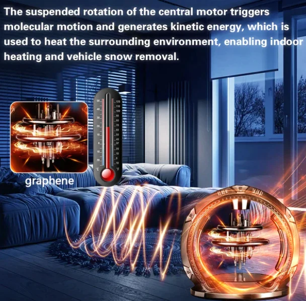 When the molecular motion micro-motor system rotates, they demonstrate the kinetic energy conversion process of human high-tech technology. These molecular movements not only generate kinetic energy, but also efficiently convert it into warm and comfortable heat. And there is no noise, which highlights the application of advanced human science and technology to smoothly convert kinetic energy into comfortable heat around the space, thereby ensuring a comfortable and warm atmosphere.
