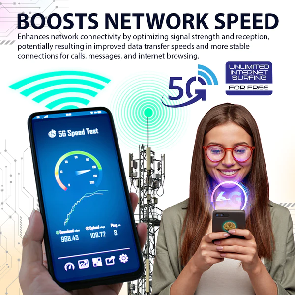 Our network speed booster is a compact, circular sticker no larger than a coin, designed to seamlessly fit inside your phone case. With its small size and hassle-free installation, you can enjoy exceptional network performance effortlessly.