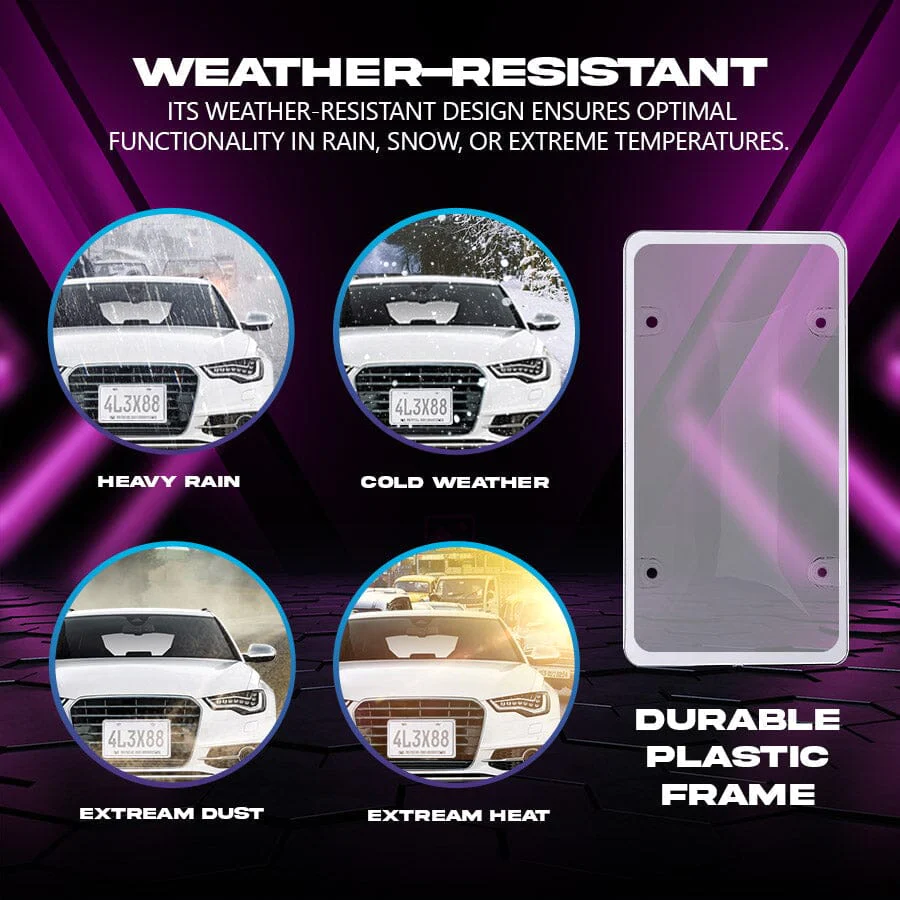 In the face of video recordings or strong flashes, the Seurico™ BlurLESS LED Plate Frame remains impervious. This revolutionary product effectively conceals license plate information, ensuring your privacy remains intact. Discreetly integrated into your vehicle, it seamlessly blends in when not in operation, springing into action with a simple button press in just 0.3 seconds.