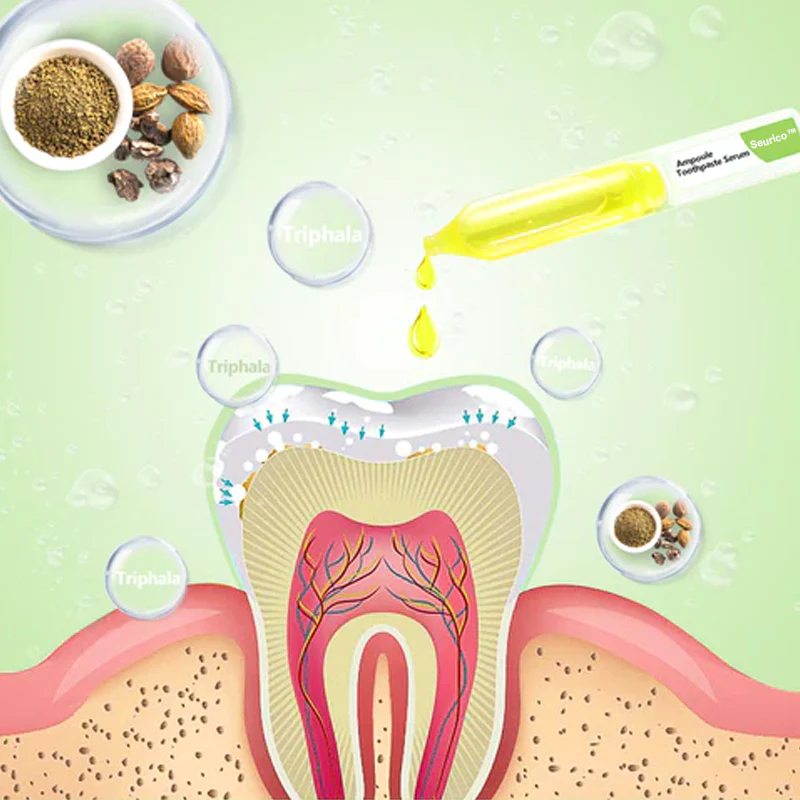 Whitening toothpaste essence can help you kill bacteria that penetrate deep into the alveolar and root canal, stimulate the restorative formation of dentin, and help repair tooth decay. For severely necrotic cavities, it can stimulate the gums to produce new tooth germs and promote the growth of new teeth.