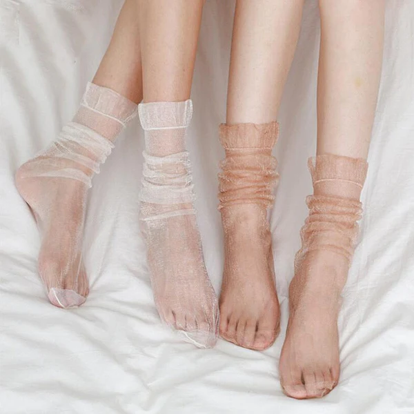 Package Includes: 1 x Sexy Ultra-thin Fluffy Socks Women Glisten Transparent Long Socks Tulle Chiffon Woman Socks Leg Female Streetwear Calcetines