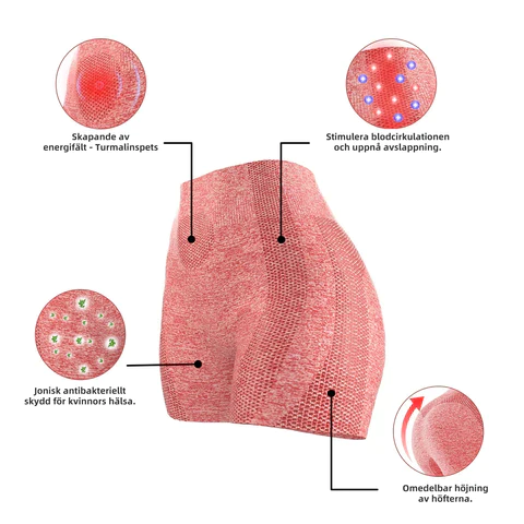 De stimulerar över 800 reflexpunkter i magen. SHAPERMOV™ Ion Shaping Shorts genererar energi utan att behöva någon annan energikälla (t.ex. elektricitet). Dessa yoga-shorts med turmalin är baserade på jonterapi, infraröd terapi och absintterapi och ger användarna en mångdimensionell massage och stimulering. Det hjälper effektivt till att stimulera blod- och lymfcirkulationen i kroppen, lindrar lymfödem och inflammation samt minskar vätske- och cellulitansamling i kroppen.