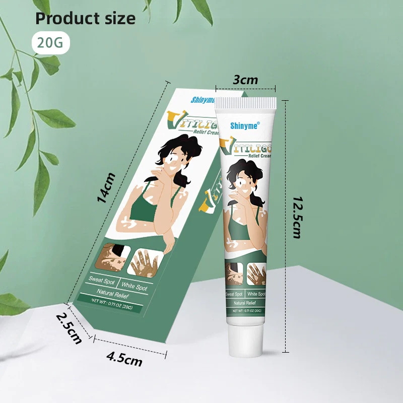 Shinyme Vitiligo Skin Repair Cream helps Improve the physiological balance of melanocytes and keratinocytes in the vitiligo epidermis. Regulates skin pigmentation with its natural formula that can regulate pigmentation, repair vitiligo, and promote melanin recovery.